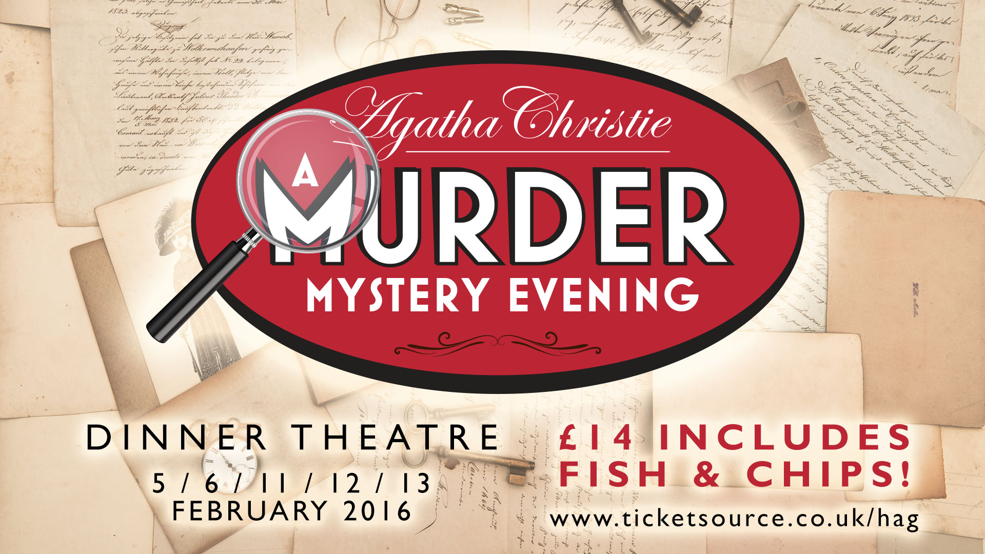 Make 2016 the year to visit the theatre more! Our first show is from the pen of the queen of mysteries herself – Agatha Christie. Cards on the Table from 5th February. Just £14 which includes a fabulous fish & chips meal: www.ticketsource.co.uk/hag